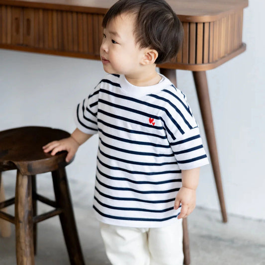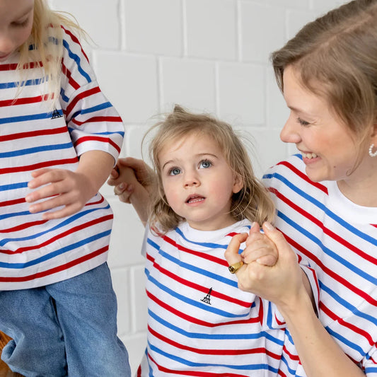 Matchende stribet T-shirt 100% økologisk bomuld - forælder og barn