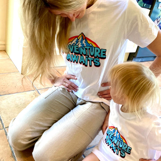 Matchende T-shirt til forældre og barn - Adventure Awaits