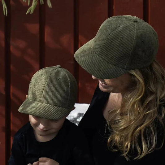 Matchende kasketter til forældre, børn og babyer - beige og grøn