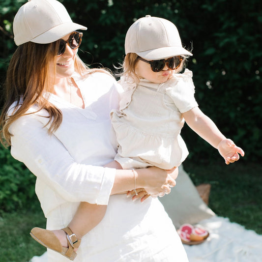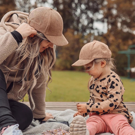 Greige fløjlshætte - matchende til voksne, børn og babyer