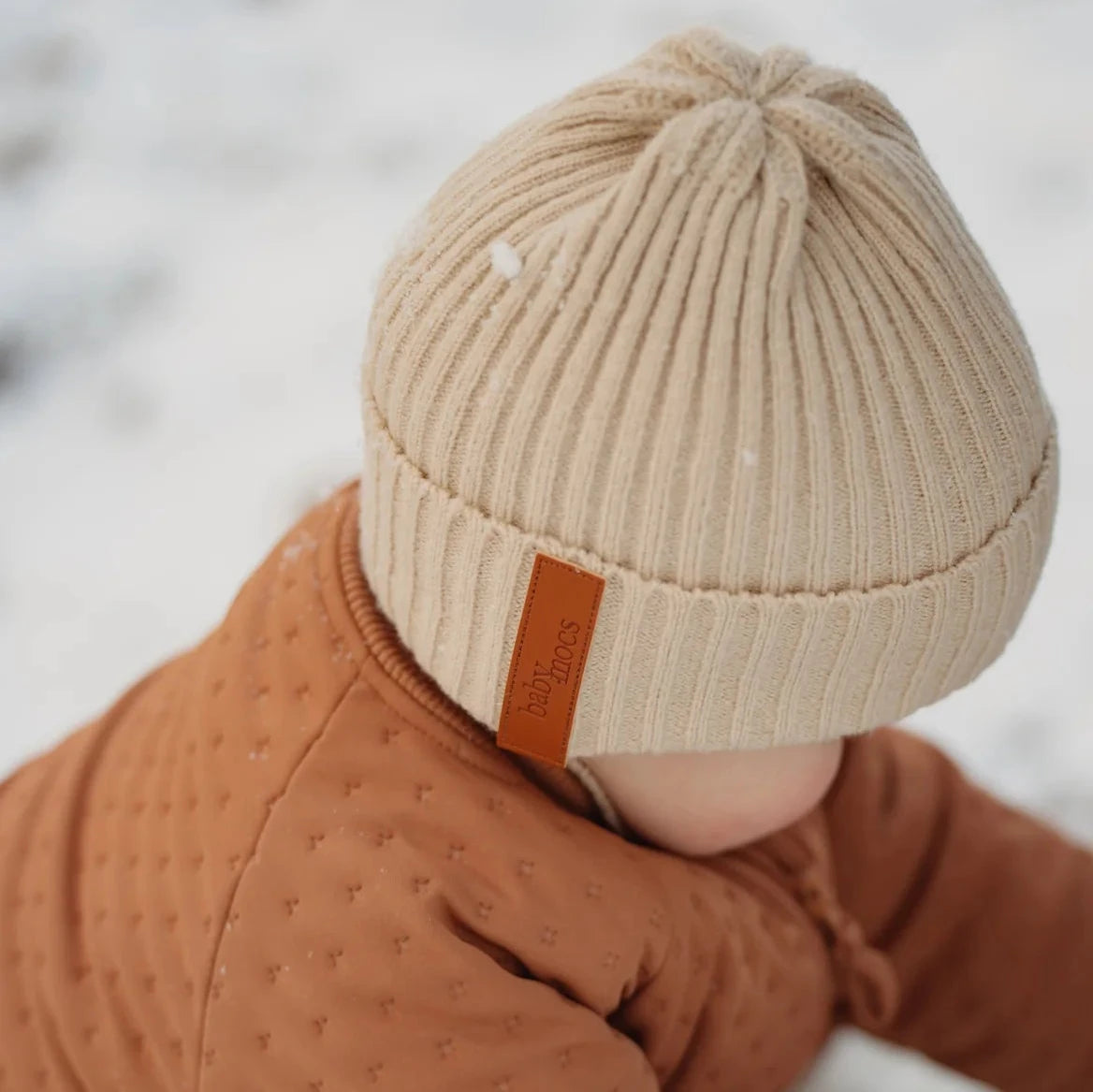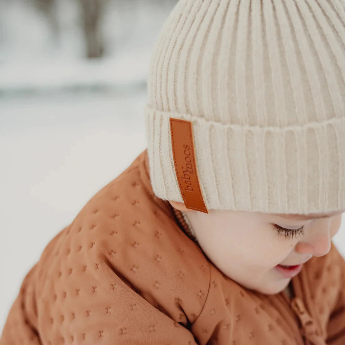 Barne/baby kasketten kommer med et logo med initialerne BabyMocs og voksen kasketten har initialerne BM. Huen kommer fra det svenske mærke BabyMocs.